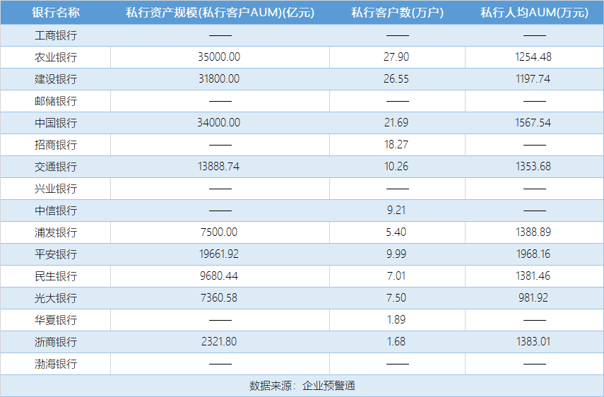 国有大行在私东说念主银行资产贬责范围(AUM)方面占据着皆备上风。据已公布数据来看,中国农业银行以3.5万亿元的擅自AUM位列首位,擅自客户数达27.9万户,东说念主均资产范围为1254.48万元。中国银行和竖立银行紧随自后,擅自AUM差别为3.4万亿元和3.18万亿元,客户数差别为21.69万户和26.55万户。中国银行擅自东说念主均AUM高达1567.54万元,在高净值客户深度盘算推算方面上风尽显。